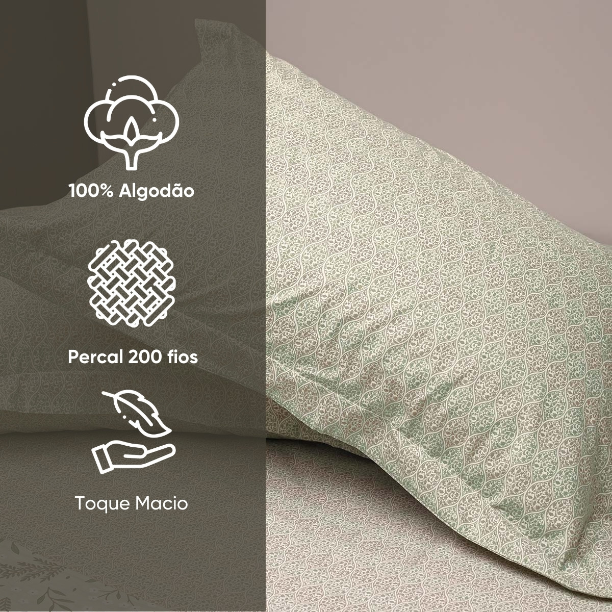 - Percal 200 fios com toque macio e confortável;