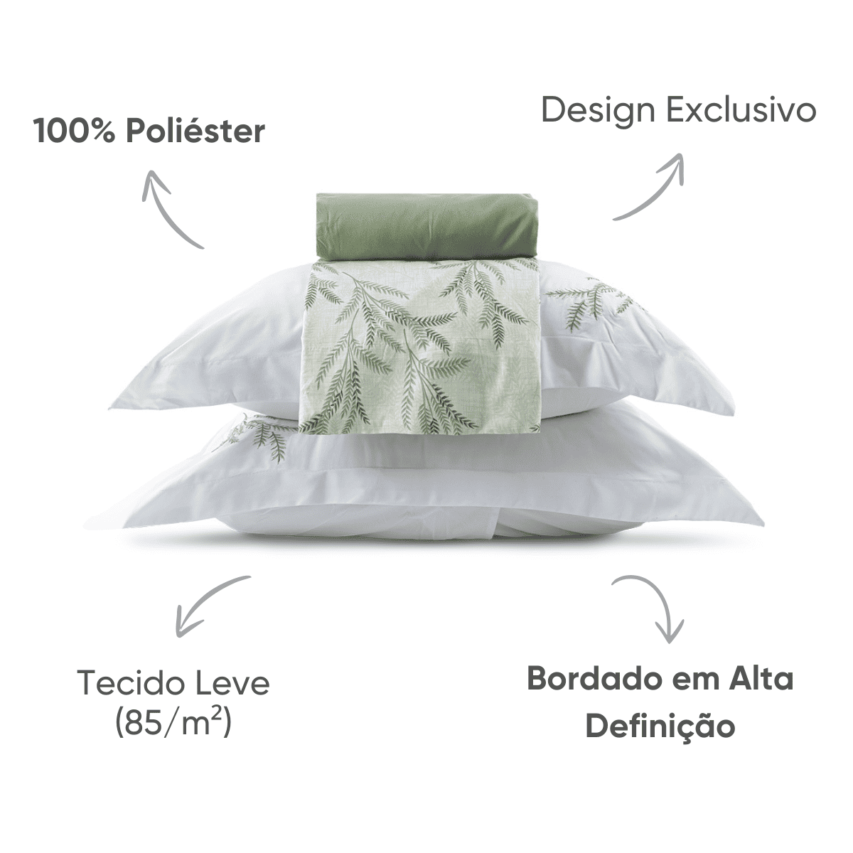 • Bordado em alta definição nas fronhas, com acabamento refinado;