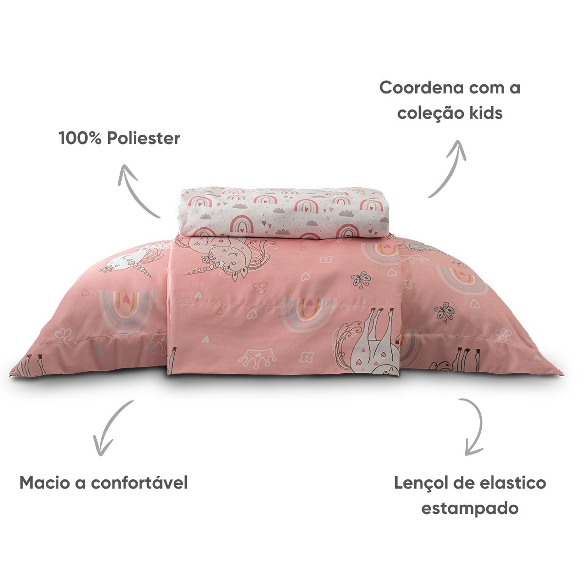 Com estampas divertidas e delicadas, o jogo ainda combina com a Toalha Soft Kids e o Kit Colcha Soft Kids, criando um visual coordenado e encantador para o quarto infantil. É uma escolha prática que agrada aos pequenos e tranquiliza os pais na hora de montar um enxoval bonito e funcional.