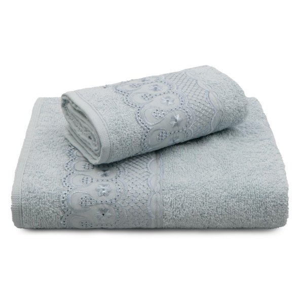 Tanto a toalha de banho quanto a toalha de rosto do Jogo de Toalha 2 Peças Bordare são 100% algodão, exceto a renda aplicada, e possuem uma gramatura de 400g/m², garantindo uma grande absorção e um toque único.