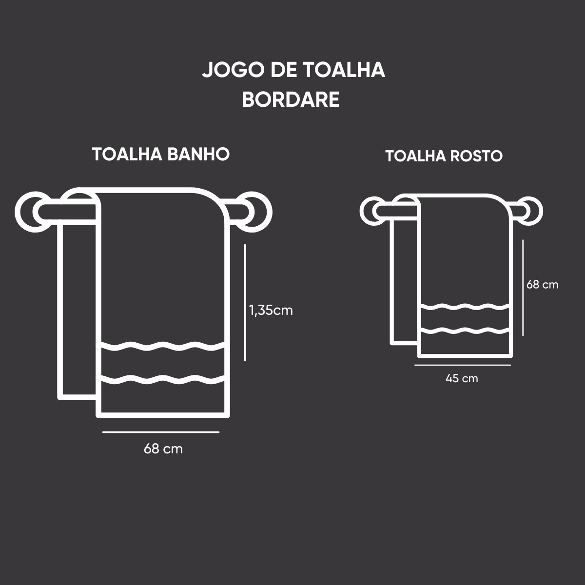 Além disso, o Jogo de Toalhas 4 Peças Bordare está disponível em opções de cores clássicas, permitindo que você escolha a que melhor se adapta ao estilo do seu banheiro.