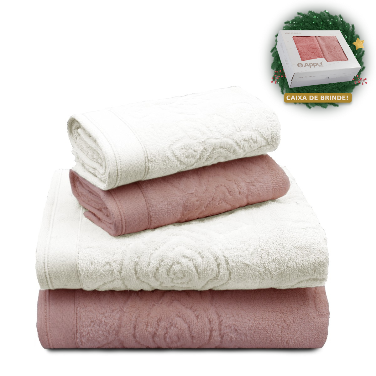 Jogo de Toalhas 4 Peças Fio Penteado Lady Appel Home Branco/Rosa mistico