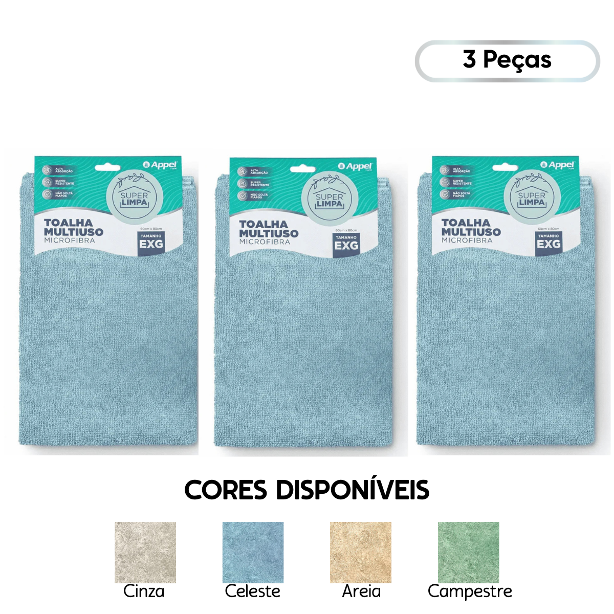 Kit 3 Panos de Microfibra 60x90