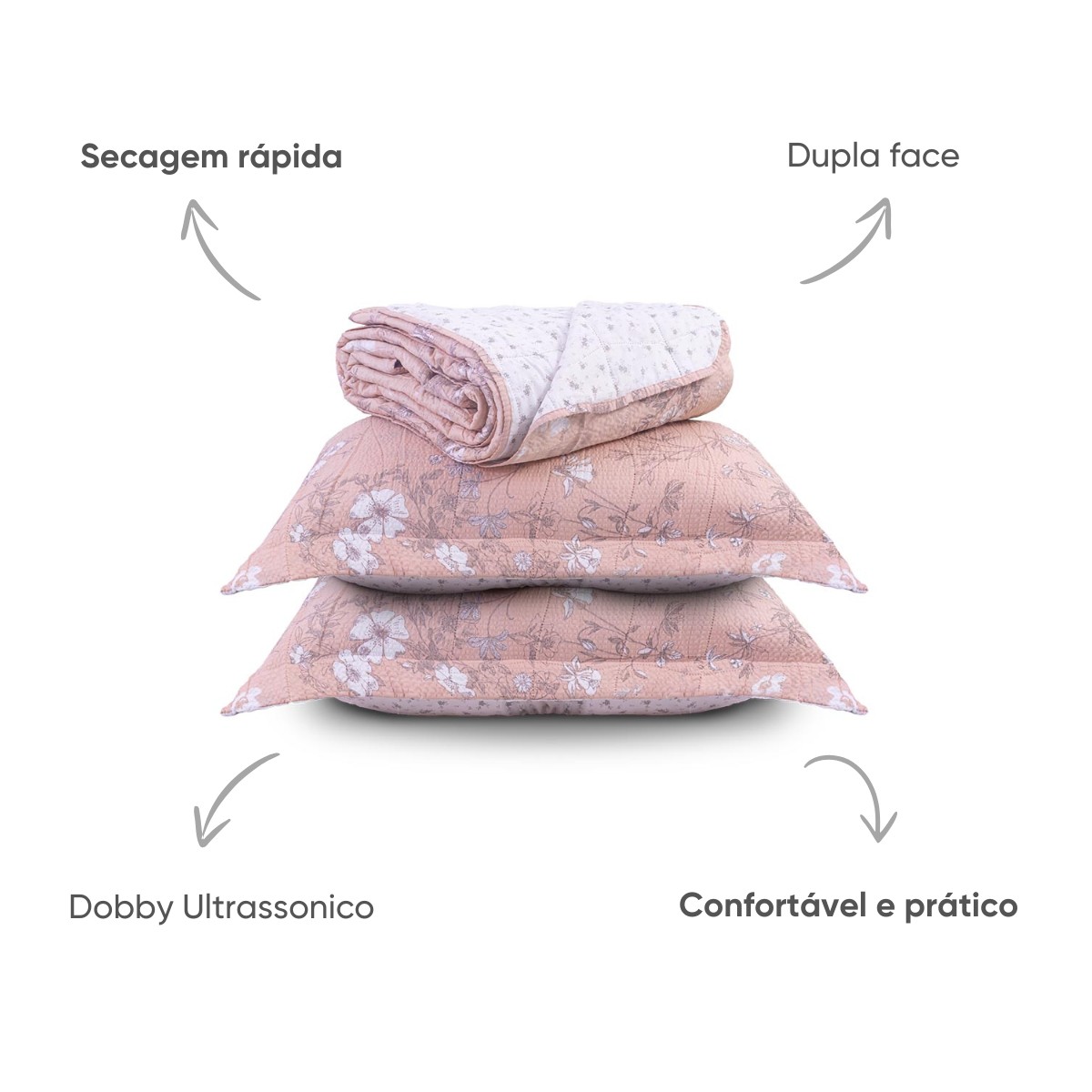 A peça é dupla face, o que permite variar a decoração com facilidade, e acompanha porta-travesseiros com abas para um visual completo na cama. É um produto confortável, resistente e com excelente custo-benefício para compor seu enxoval com estilo e funcionalidade.
