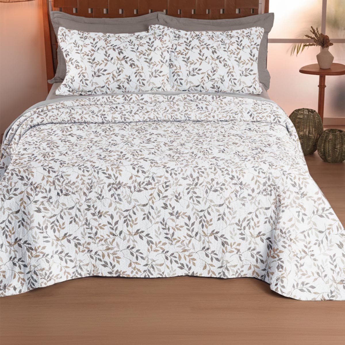 A peça é dupla face, o que permite variar a decoração com facilidade, e acompanha porta-travesseiros com abas para um visual completo na cama. É um produto confortável, resistente e com excelente custo-benefício para compor seu enxoval com estilo e funcionalidade.