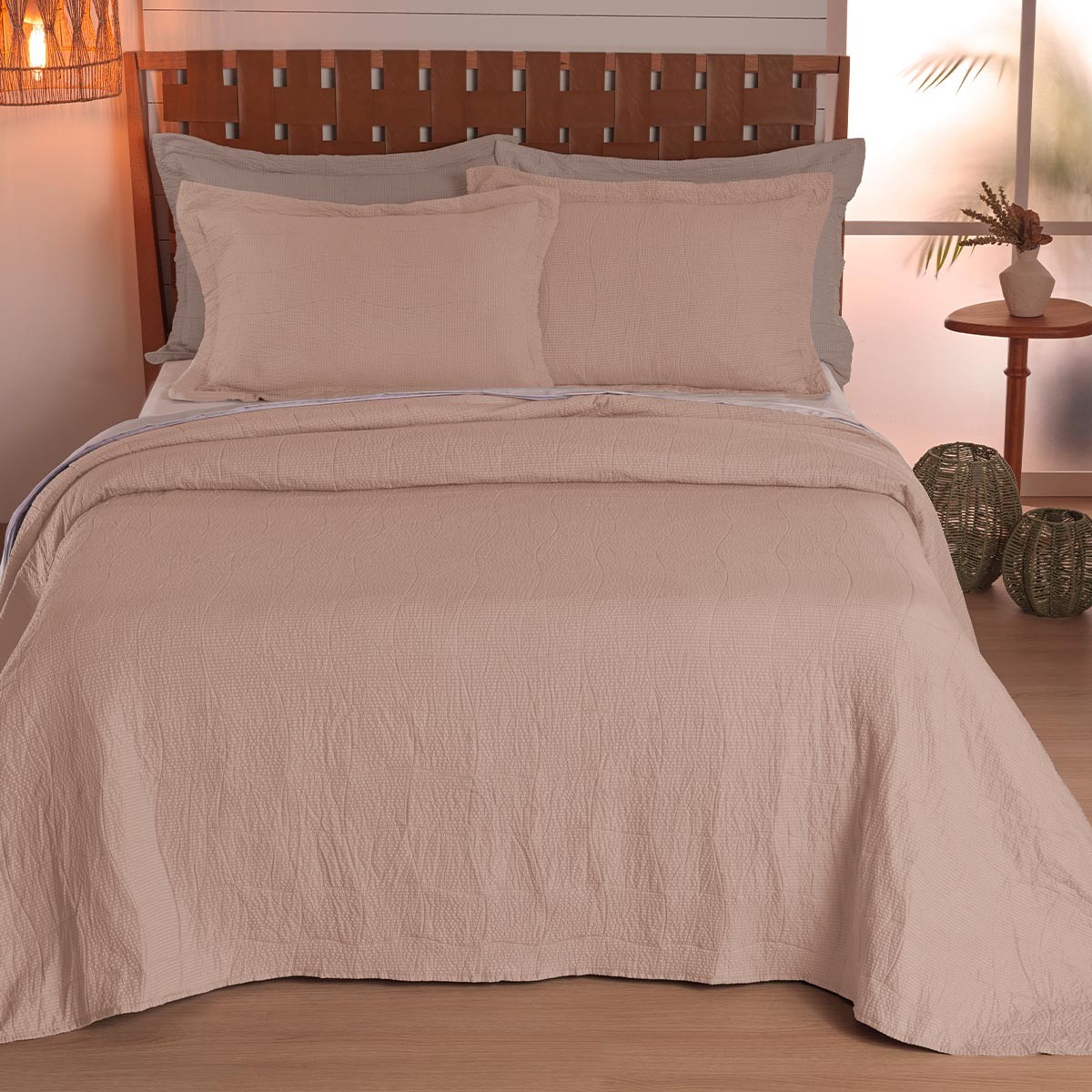 A peça é dupla face, o que permite variar a decoração com facilidade, e acompanha porta-travesseiros com abas para um visual completo na cama. É um produto confortável, resistente e com excelente custo-benefício para compor seu enxoval com estilo e funcionalidade.