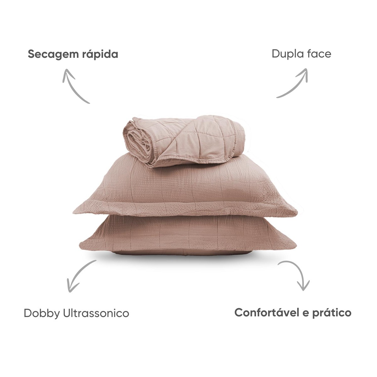 O Kit Cobre Leito Dobby Comfort é ideal para quem busca praticidade sem abrir mão do conforto no dia a dia. Feito em microfibra 100% poliéster, tem toque macio, é leve e seca rapidamente — perfeito para facilitar a rotina. Seu acabamento com efeito Dobby ultrassônico garante um visual elegante, valorizando o ambiente com discrição e bom gosto.