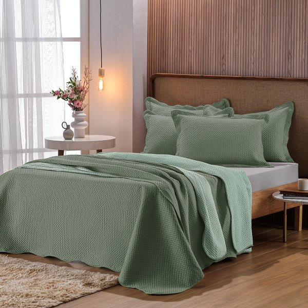 O Kit Colcha com Porta Travesseiros Essence Casal, contendo 01 Colcha 2,20m x 2,40m e 02 Porta Travesseiros 50cm x 70cm + 5cm, microfibra premium, toque de pêssego, 100% Poliéster com gramatura de tecido: 85g/m² e enchimento 150g/m². O Kit Colcha com Porta Travesseiro Casal Essence é a escolha ideal para quem busca por conforto, maciez, beleza e qualidade. Seu corpo construído em microfibra premium, juntamente com o efeito ultrassônico, garantem um design acolhedor e que interage com qualquer ambiente. By Appel.