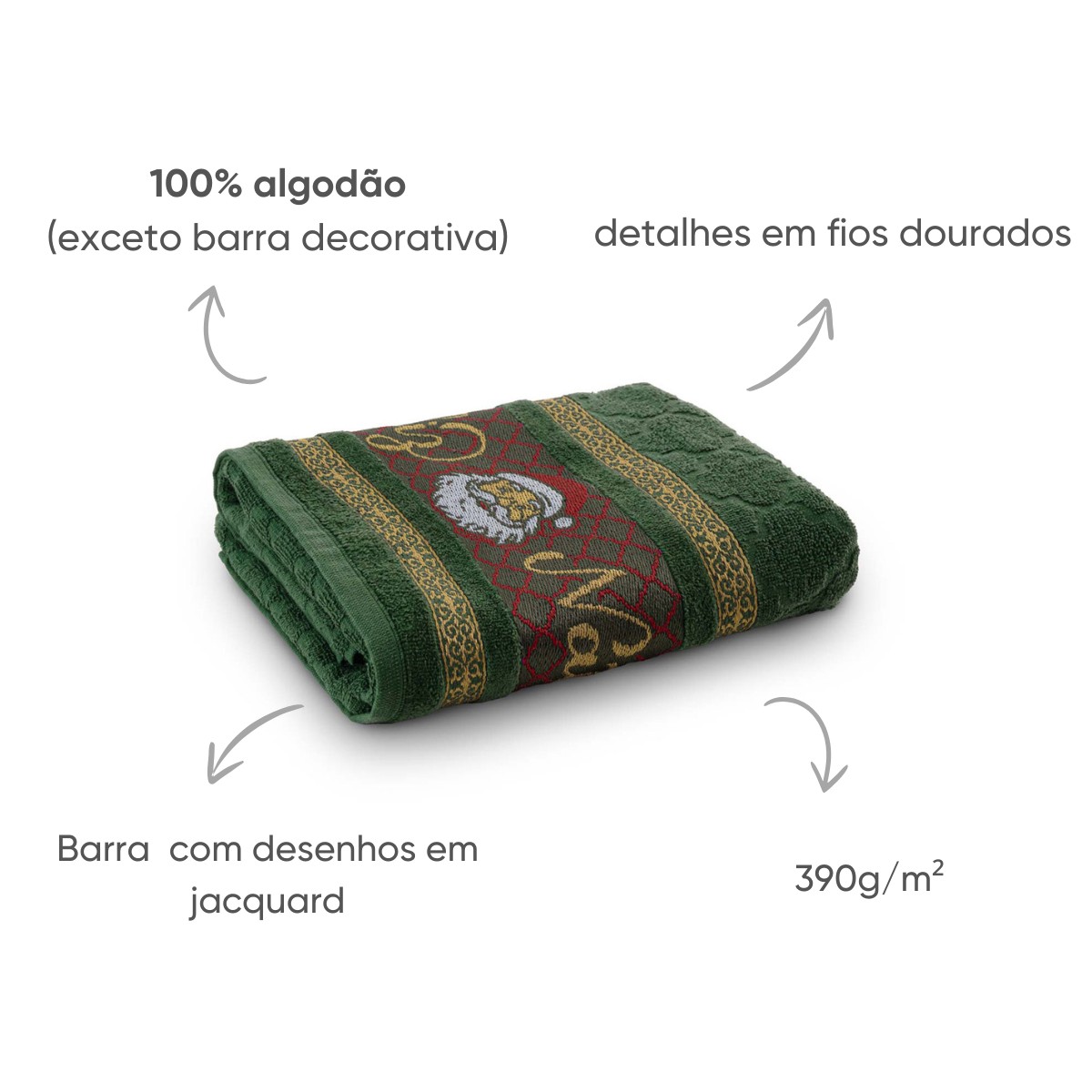 Toalha de Banho Natalina Appel Home Papai Noel Verde